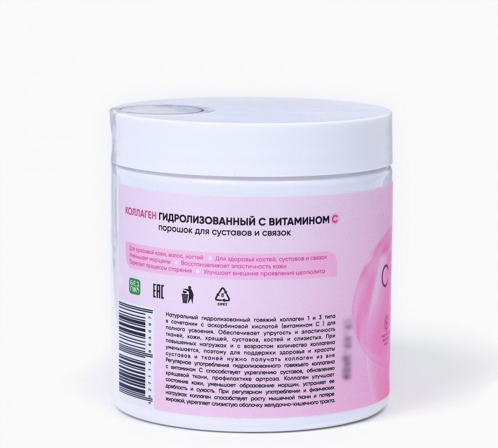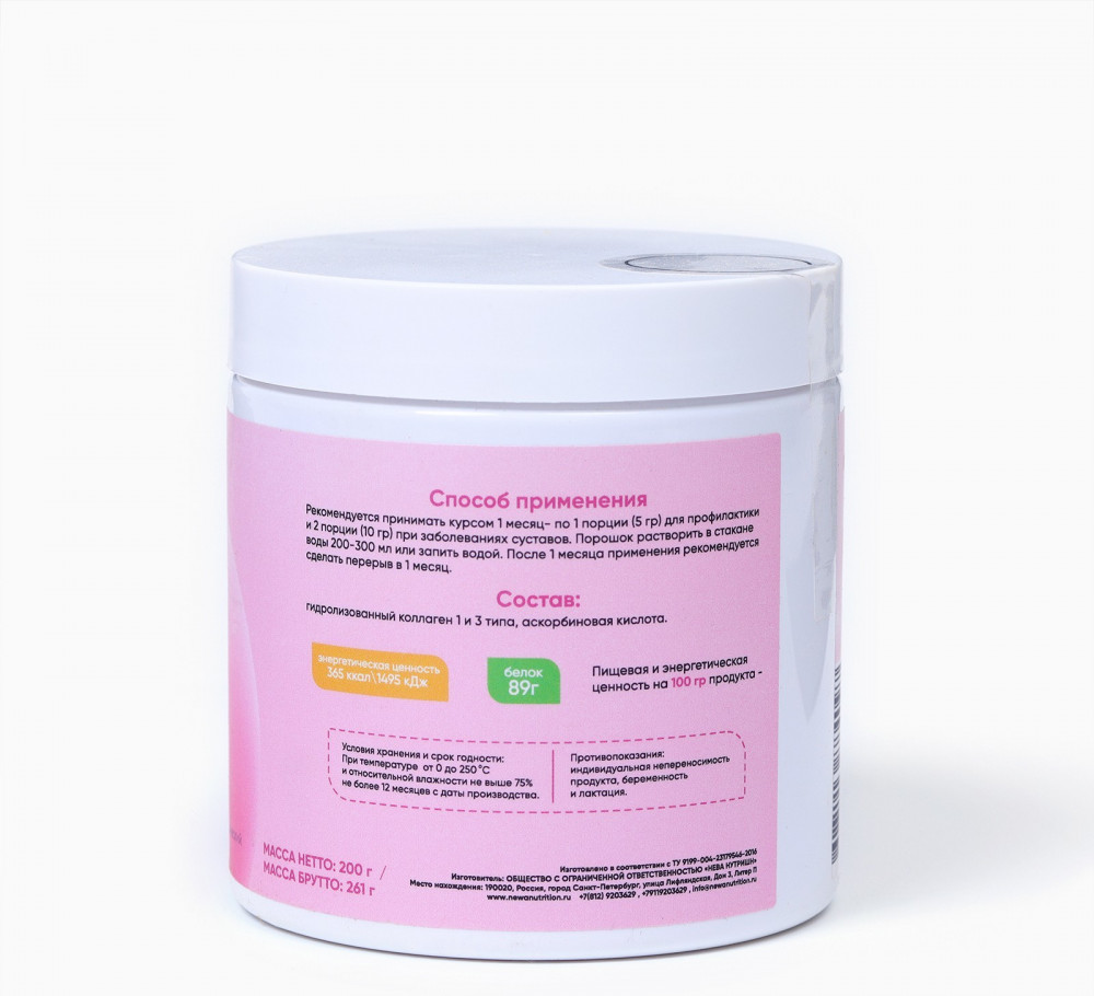 • этот продукт содержит высококачественный гидролизованный коллаген, который легко усваивается организмом. Коллаген — это основной белок, который составляет кожу, суставы, волосы и ногти, и его употребление способствует сохранению их здоровья и красоты;