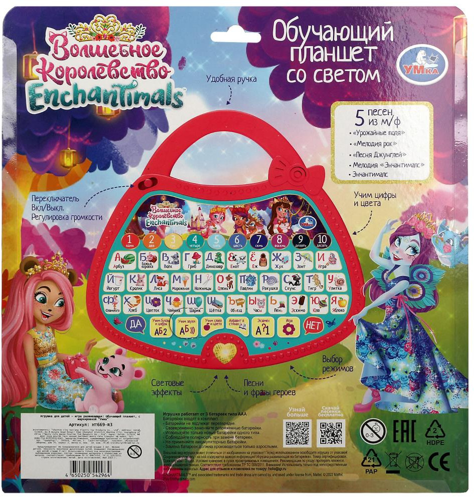💳 Оплатить за товар можно при получении 🇰🇿 Есть бесплатная доставка по Казахстану от 1 дня 🎁 Копите бонусы с каждой покупки Серия: Enchantimals Обучающий планшет «Enchantimals» ТМ «УМка» станет прекрасным подарком для маленьких поклонниц мультсериала про волшебных подружек и их любимых зверюшек: |