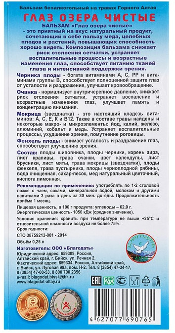 Благодать с Алтая Бальзам «Глаз озера чистые»