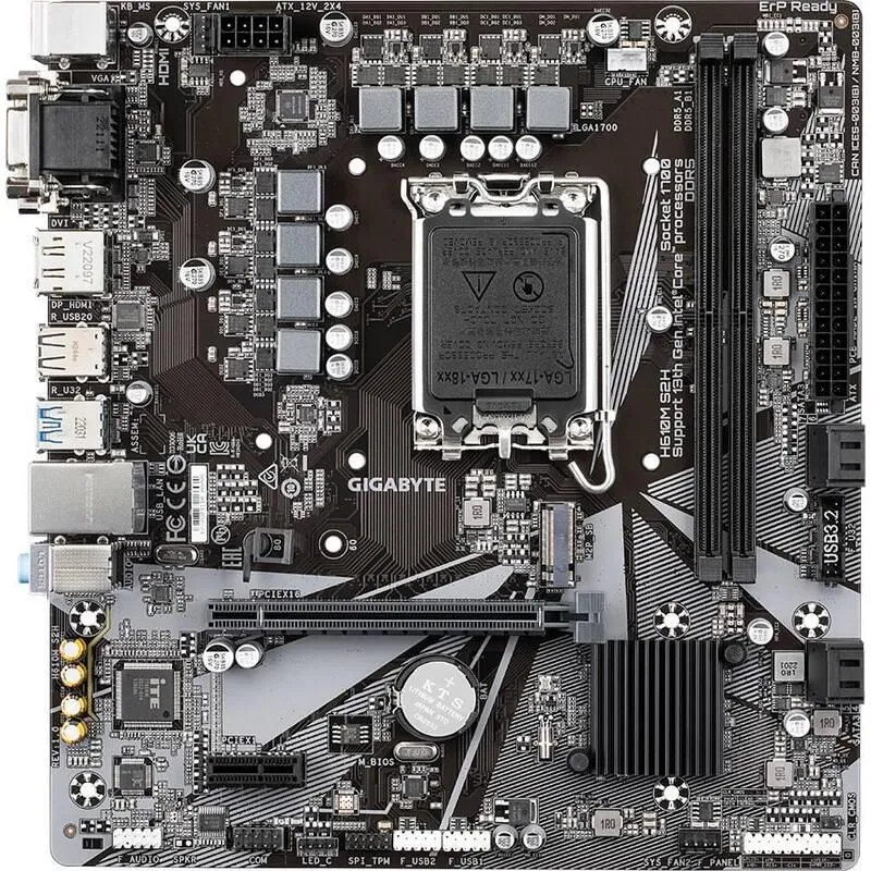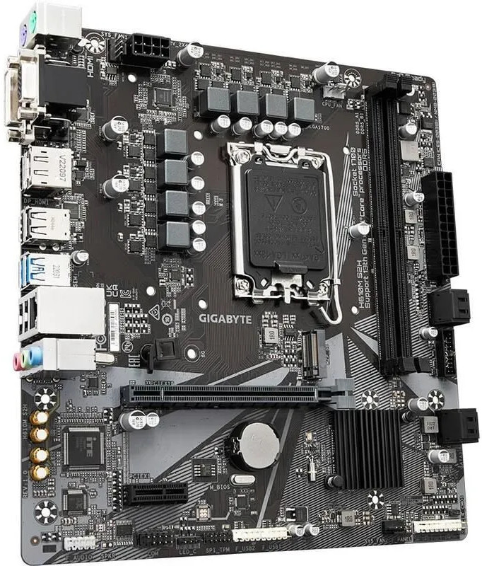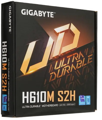 Материнская плата GIGABYTE H610M S2H соответствует форм-фактору Micro-ATX, поэтому позволяет собрать высокопроизводительную систему в компактном корпусе. Она поддерживает процессоры Intel Core 12/13/14-го поколения в исполнении LGA 1700. Два слота DIMM предусматривают установку модулей оперативной памяти поколения DDR5. Для графических ускорителей есть по одному слоту расширения PCI-E x16 и PCI-E x1. Вместительное хранилище можно организовать с помощью 1 разъема M.2 и 4 портов SATA.