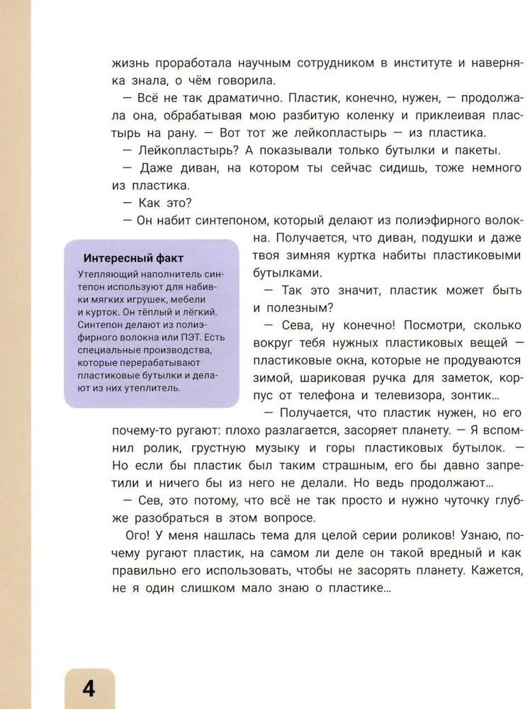 Навещать бабушку на летних каникулах -любимое дело Севы: с ней всегда весело и интересно. Эта поездка не стала исключением, потому что главные герои книги открыли настоящую охоту за мифами о... пластике! В «Истории одного лета» тебя ждут неожиданные факты про космос, машины, медицину, строительство домов и многое другое. Вместе с Севой и бабушкой Ниной ты отправишься в поход, чтобы узнать правду о пластике, его использовании и переработке. Но будь внимателен: по дороге придётся выполнить ответственные задания и ответить на вопросы. Только так можно помочь героям книги разобраться в том, где правда, а где — миф. |