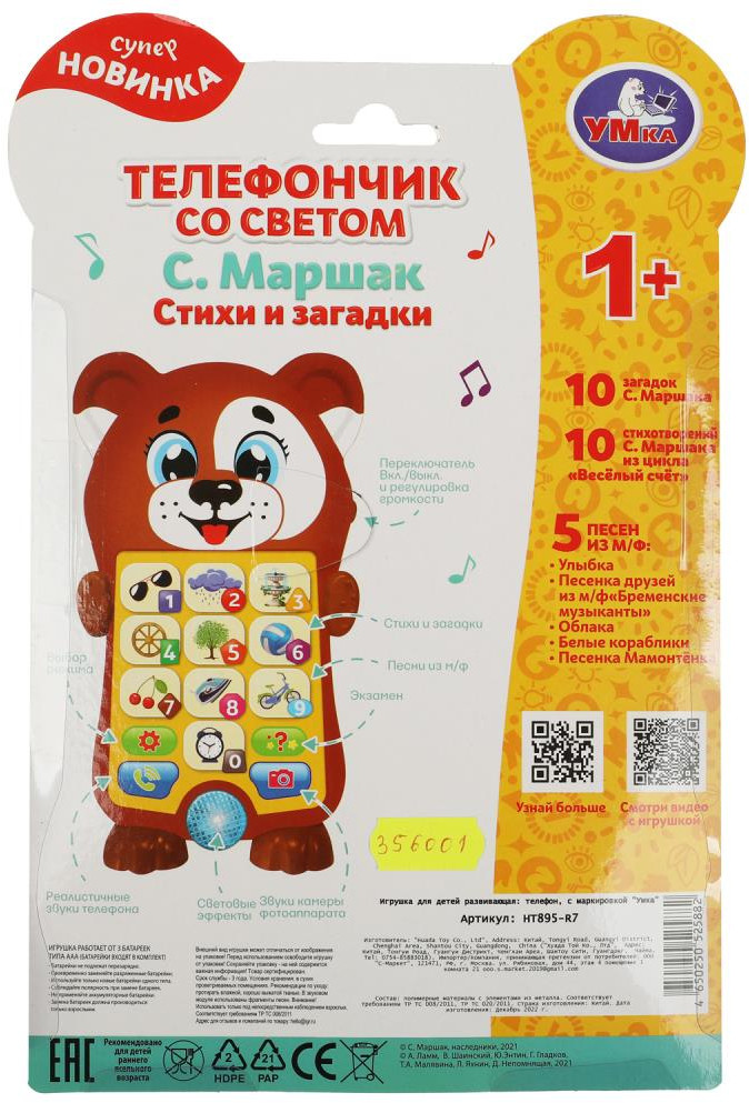 Телефончик со светом «С. Маршак. Стихи и загадки» ТМ «УМка» непременно понравится маленьким любознайкам.