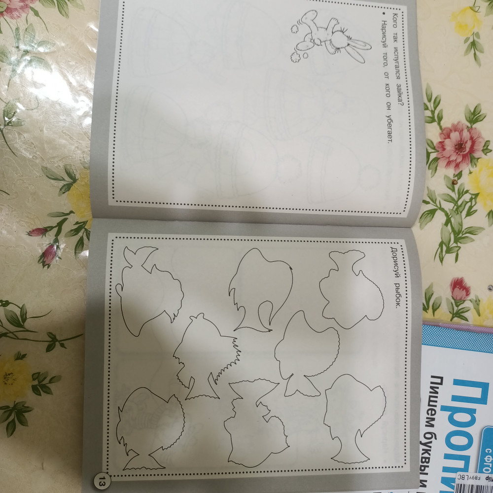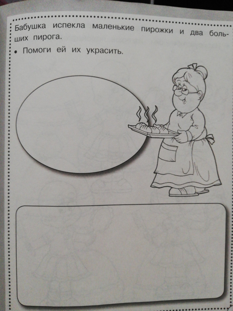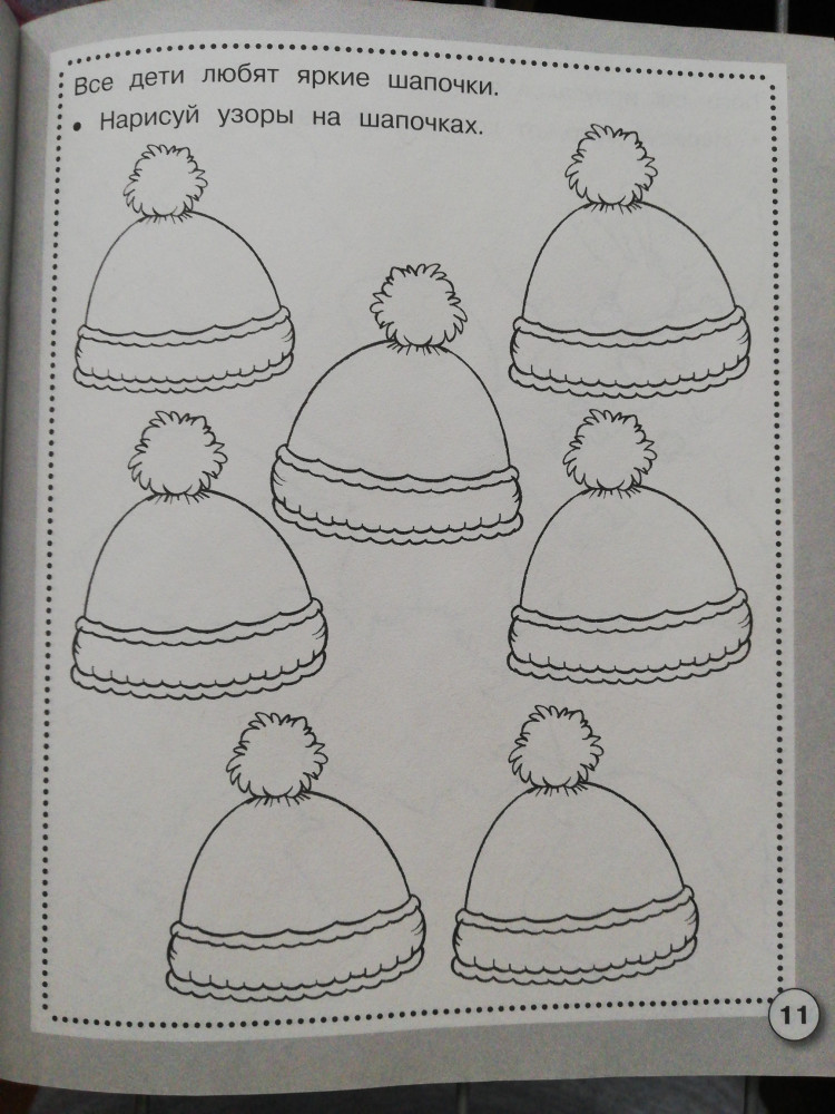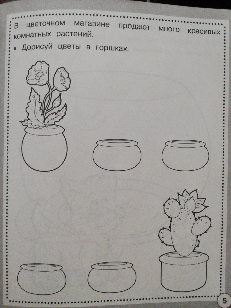 Отличная тетрадь, много интересных заданий на развитие творческого мышления. Нужно не просто что-то нарисовать, но и сначала придумать, что именно нарисовать. Например, украсить торт, нарисовать цветы в горшках, угощение для кота, узоры на шапках, прически для девочки, овощи на грядках и т.д.