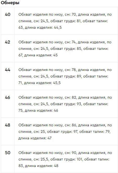 Размер производителя