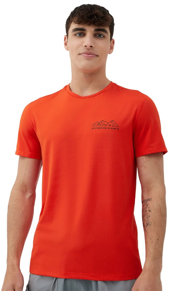 Мужская быстросохнущая треккинговая футболка. Круглый вырез горловины. Мелкий принт спереди. Быстросохнущая технология 4fdry улучшает удаление влаги. Зональная вентиляция влияет на правильную циркуляцию воздуха. Плоские швы с эластичными нитями минимизируют риск потертостей.