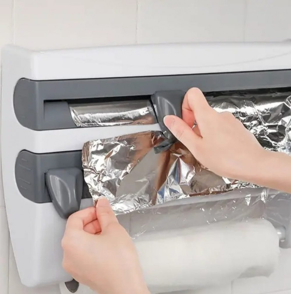 Top Leader Органайзер для пищевой пленки, фольги и бумажных полотенецВ данный момент этот товар отсутствует в продаже. Возможно, у нас найдется аналогичный или похожий товар здесь. Пластиковый органайзер подвесной настенный с отсеками под пищевую пленку, фольгу и бумажные полотенца. Также имеется сверху дополнительное место для хранения, например можно поставить баночки со специями. Для удобства использования предусмотрены резаки: острый металлический для пищевой пленки и резак роликовый для фольги. Обратите внимание что крышку с резаками можно переставить местами. Размер изделия 39*10*24см. Лаконичный дизайн и универсальный серо-белый цвет подойдет под любую кухню. |