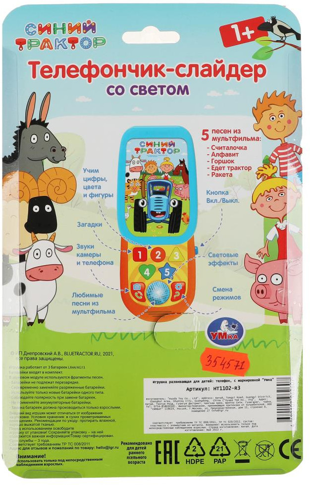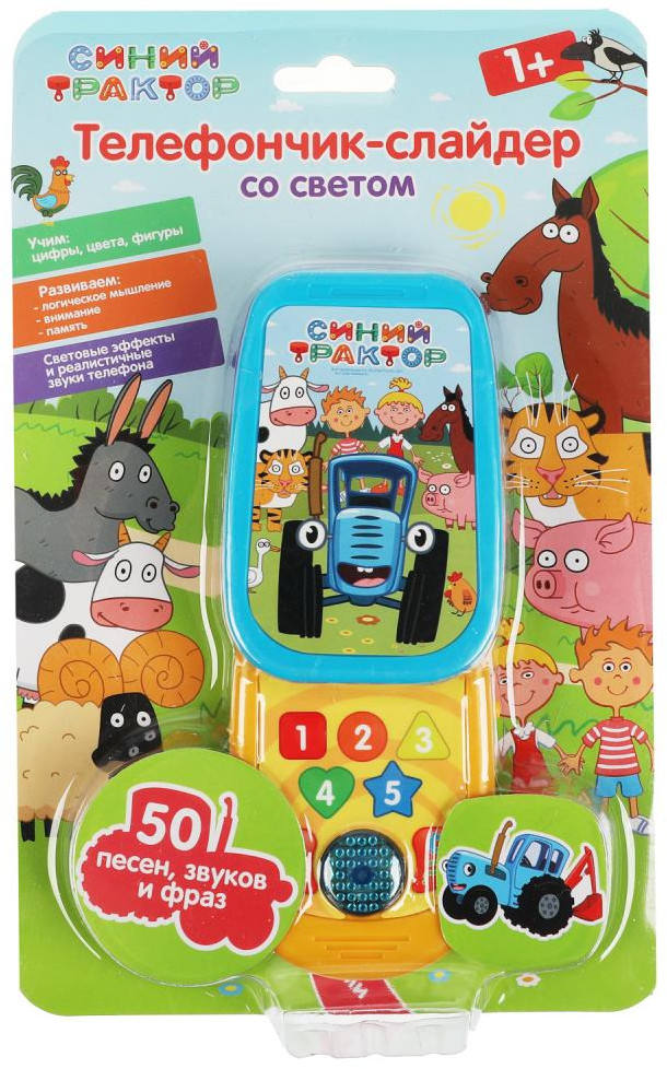 Телефончик-слайдер со светом «Синий трактор» ТМ «УМка» станет прекрасным подарком для маленьких поклонников мультсериала про весёлый трактор.