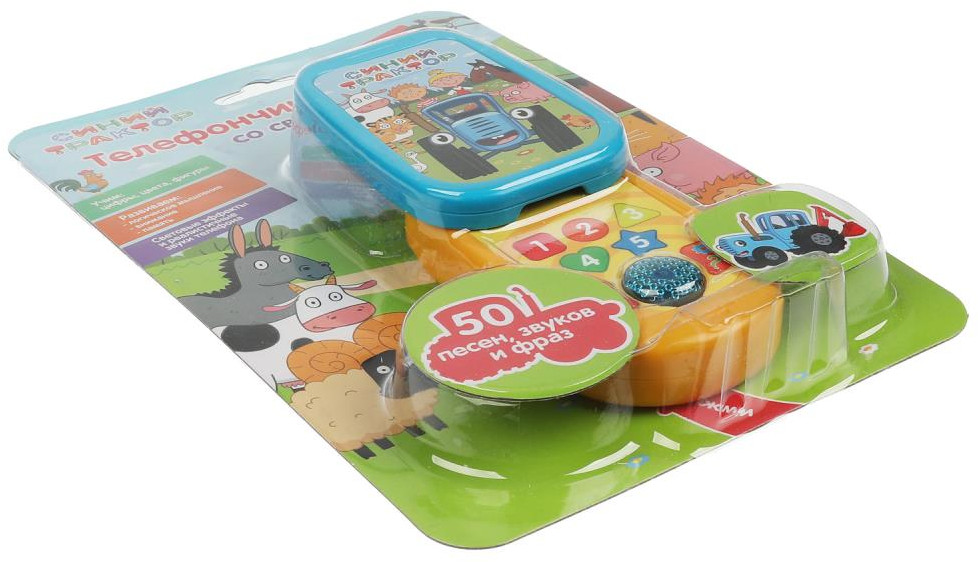 Вашего малыша приведёт в восторг эта игрушка в виде яркого телефона. Он с удовольствием будет нажимать на фигурные кнопки разных цветов и слушать весёлые песенки из любимого мультфильма. Благодаря компактным размерам игрушку удобно брать с собой на прогулку или в поездки.