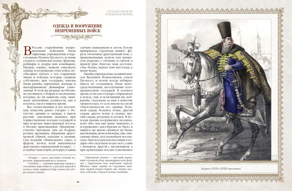В данный момент этот товар отсутствует в продаже. Возможно, у нас найдется аналогичный или похожий товар здесь. Серия: История России Легендарный труд русского военного историка генерал-майора А. В. Висковатова «Историческое описание одежды и вооружения российских войск» (1841-1862) был отмечен личной благодарностью императора Николая 1, а Императорская Академия наук удостоила это сочинение престижной Демидовской премии. Богато иллюстрированное издание представляло читателям подробное описание воинского обмундирования и вооружения за период с конца IХ по середину ХIХ века. Крохотный тираж моментально сделал первое издание труда Висковатова библиографической редкостью и желанным подарком для коллекционеров и историков.