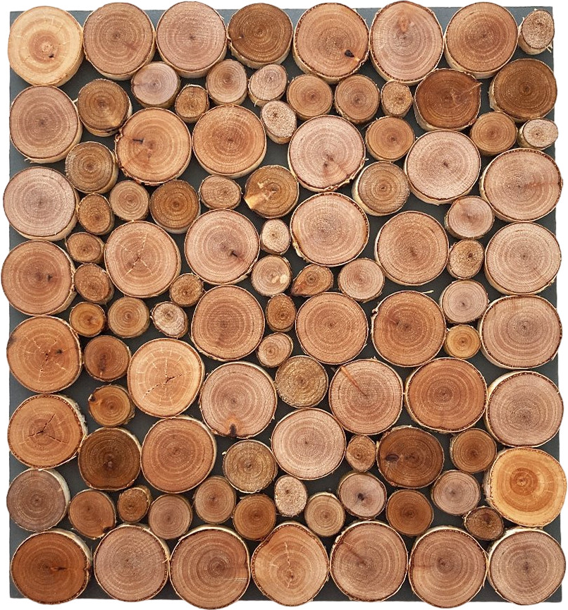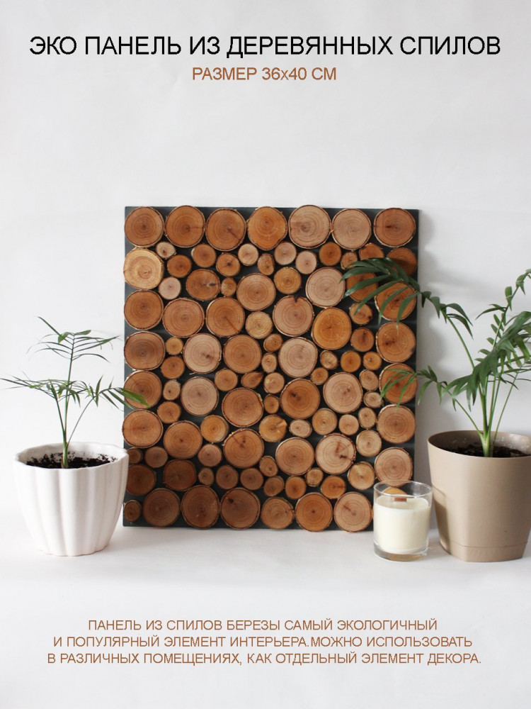 Панно декоративное из спилов березы, размером 36 × 40 см. Для изготовления панно используются спилы разного диаметра, толщиной 18 мм.