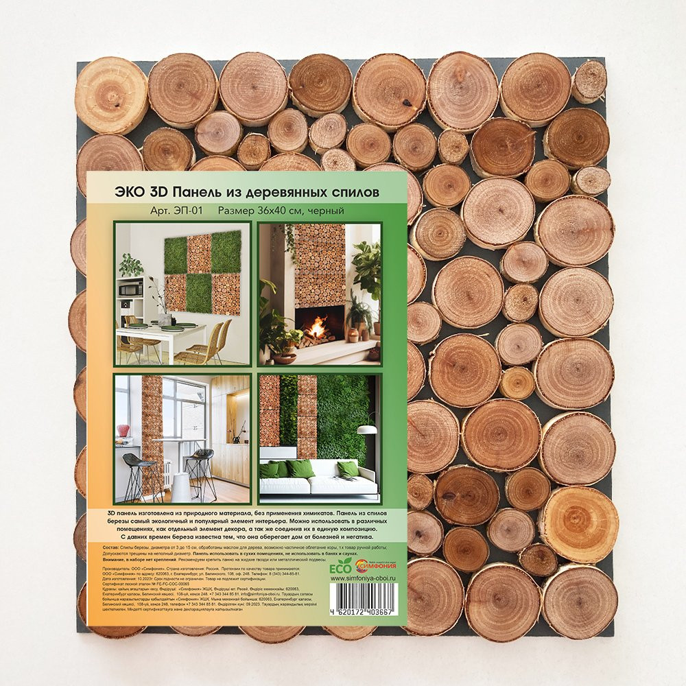 Спилы предназначены для отделки внутренних отапливаемых помещений с относительной влажностью воздуха не более 70%, и ничем не уступают спилам из можжевельника. Спилы изготовлены из природного материала с минимальной механической обработкой и без применения химикатов. Панно поставляется без крепления!