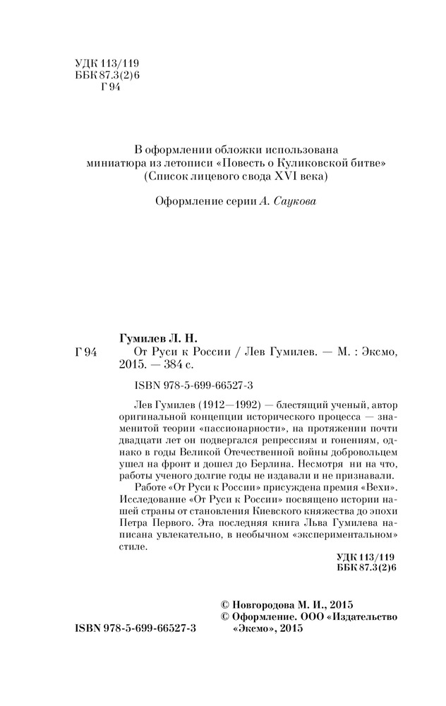 От Руси к РоссииВ данный момент этот товар отсутствует в продаже. Возможно, у нас найдется аналогичный или похожий товар здесь. Серия: Pocket Book (обложка) Лев Гумилев (1912 — 1992) — блестящий ученый, автор оригинальной концепции исторического процесса — знаменитой теории «пассионарности», на протяжении почти двадцати лет он подвергался репрессиям и гонениям, однако в годы Великой Отечественной войны добровольцем ушел на фронт и дошел до Берлина. Несмотря ни на что работы ученого долгие годы не издавали и не признавали. |