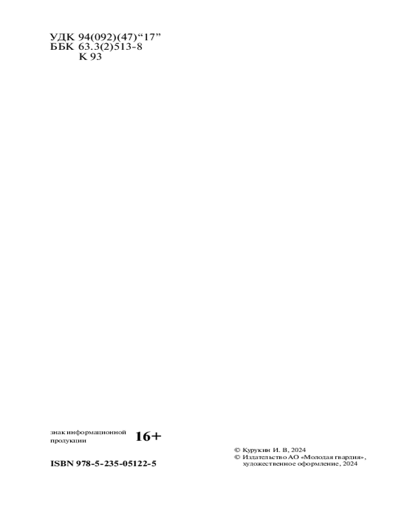 | Игорь Владимирович Курукин — доктор исторических наук (2005), доцент (1992), профессор кафедры Отечественной истории древнего мира и средних веков факультета архивного дела ИАИ РГГУ. Область научных интересов — социально-политическая история России XVI-XVIII вв., политическая борьба в послепетровской России и формирование массового исторического сознания в XVIII-XIX вв., политический механизм монархии XVIII в., русская армия и государство в XVIII в. |