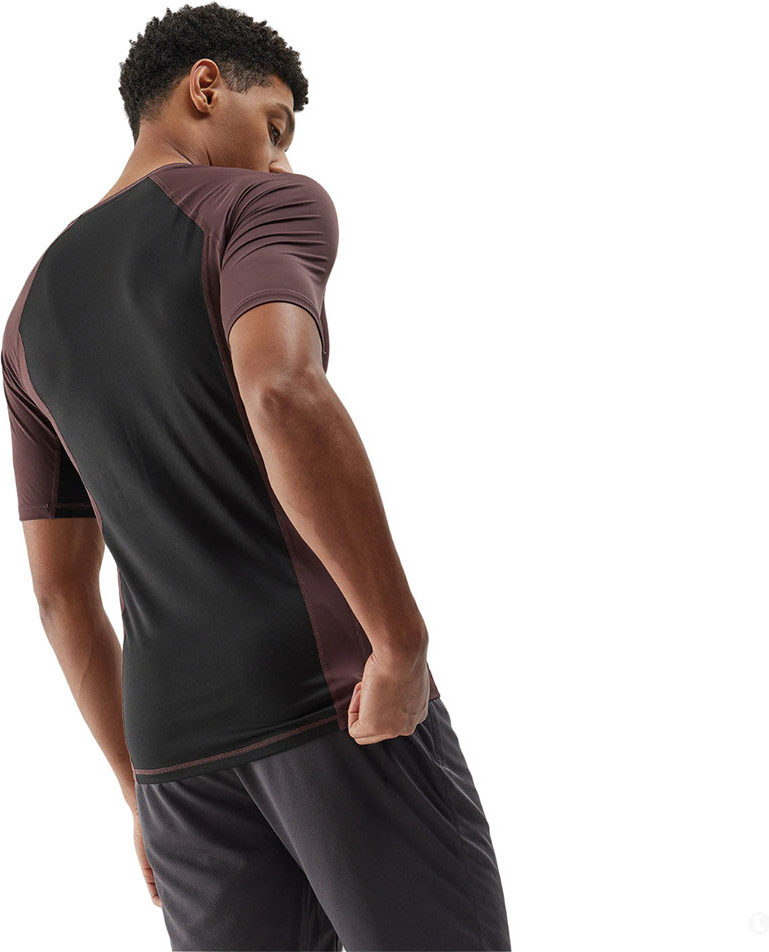 Мужская тренировочная футболка — надежная поддержка и комфорт на каждом этапе тренировки. Изготовлен из синтетического материала для долговечности и простоты ухода. Слегка эластичная ткань благодаря добавлению эластана (12%). Контрастная цветовая блокировка, мягкий и прочный трикотаж интерлок с гладкой текстурой с обеих сторон. Перфорированные сетчатые вставки под мышками и на спине для улучшения циркуляции воздуха. Рукава реглан для свободы движений, плоские швы предотвращают натирание. Быстросохнущие волокна 4fdry отводят влагу.