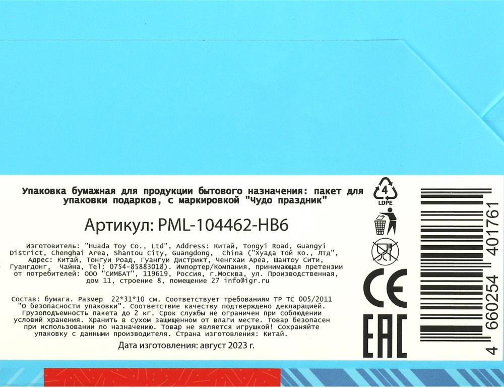 Чудо праздник Пакет подарочный