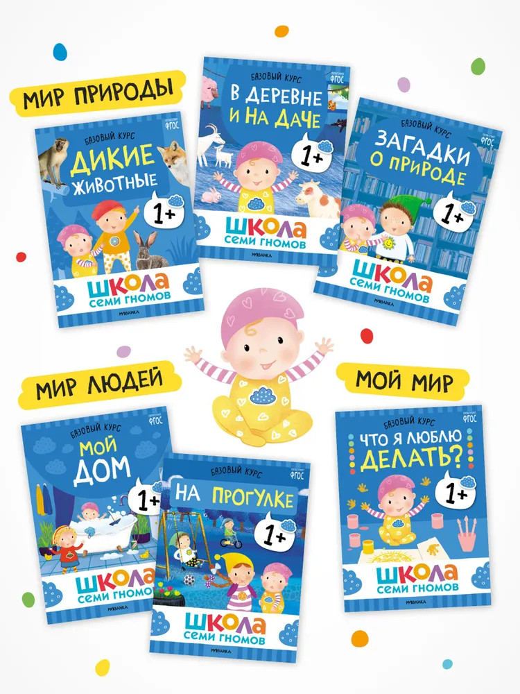 Серия: Школа Семи Гномов. Базовый курс Школа Семи Гномов — это система, а не набор книг. Этот комплект из 6 книг направлен на ознакомление с окружающим миром, его закономерностями и взаимосвязями. Окружающий мир можно условно разделить на мир природы (животный и растительный мир, времена года, погодные явления), мир людей (профессии, транспорт, предметное окружение, материалы и их свойства) и мой мир (эмоции, взаимоотношения, личность ребенка).