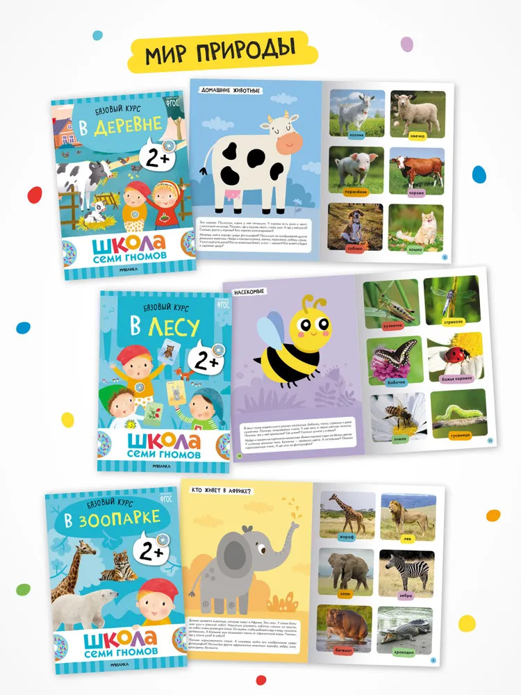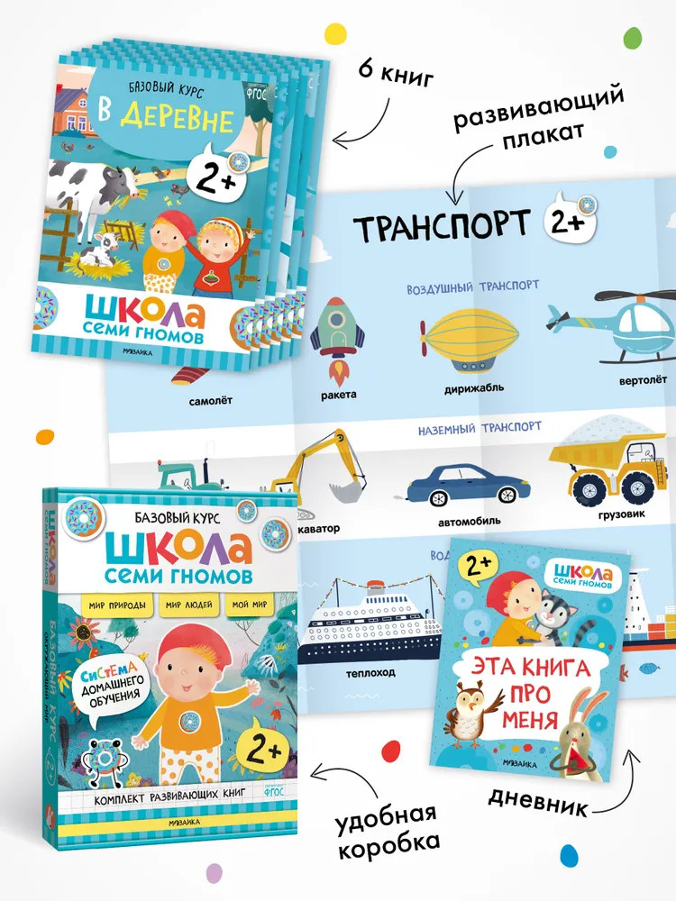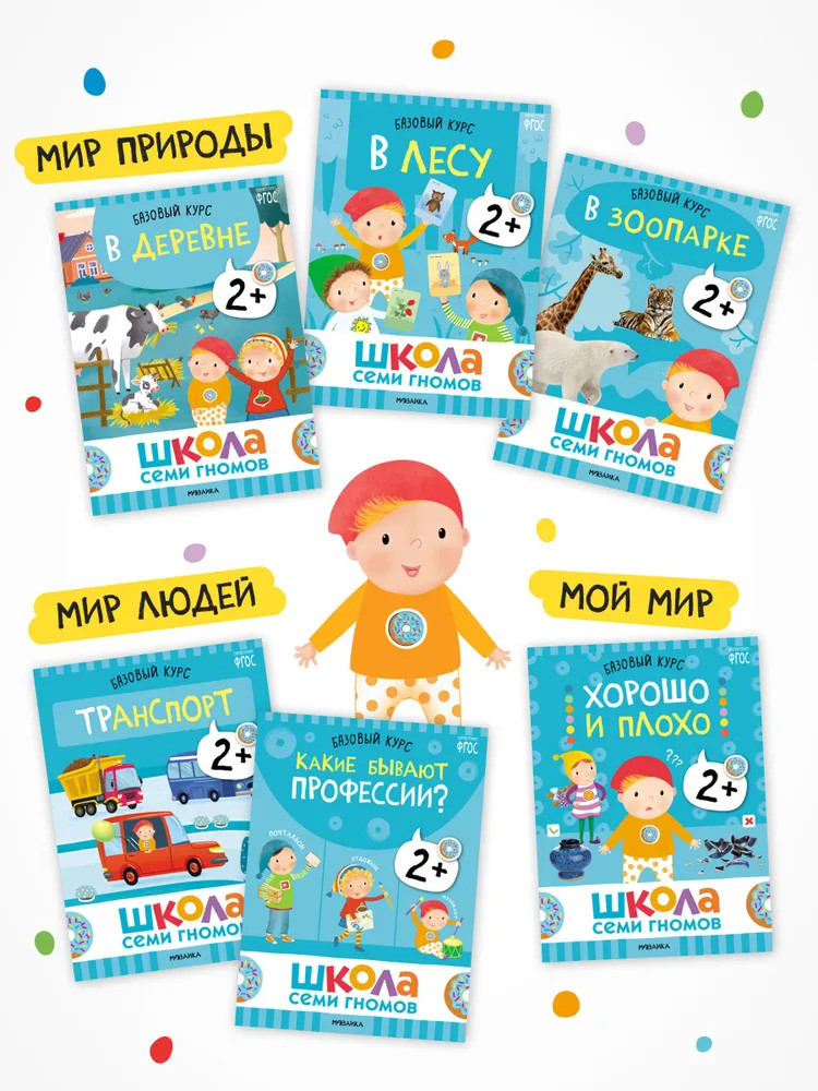 Серия: Школа Семи Гномов. Базовый курс Школа Семи Гномов — это система, а не набор книг. Этот комплект из 6 книг направлен на ознакомление с окружающим миром, его закономерностями и взаимосвязями. Окружающий мир можно условно разделить на мир природы (животный и растительный мир, времена года, погодные явления), мир людей (профессии, транспорт, предметное окружение, материалы и их свойства) и мой мир (эмоции, взаимоотношения, личность ребенка).