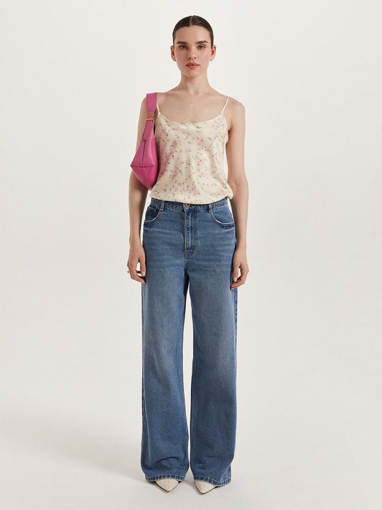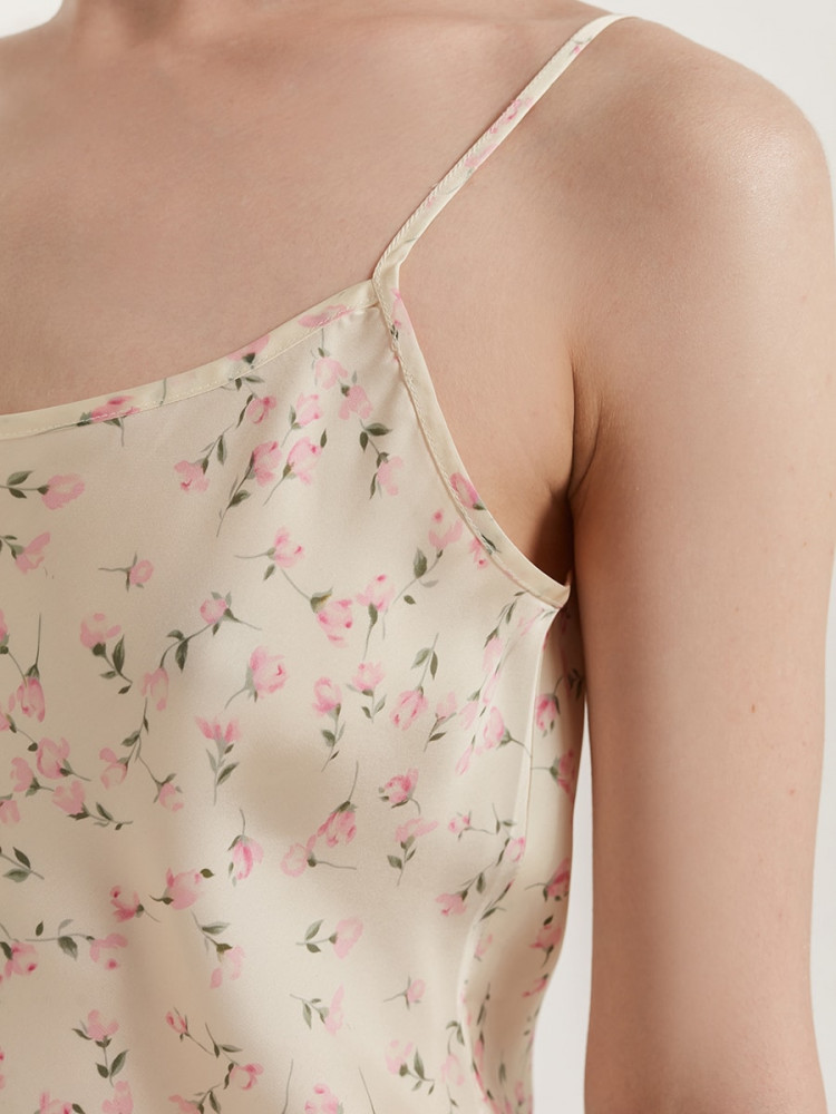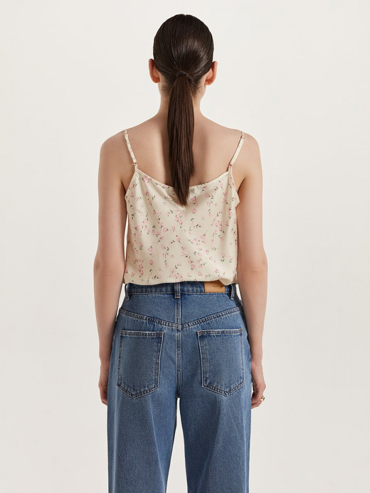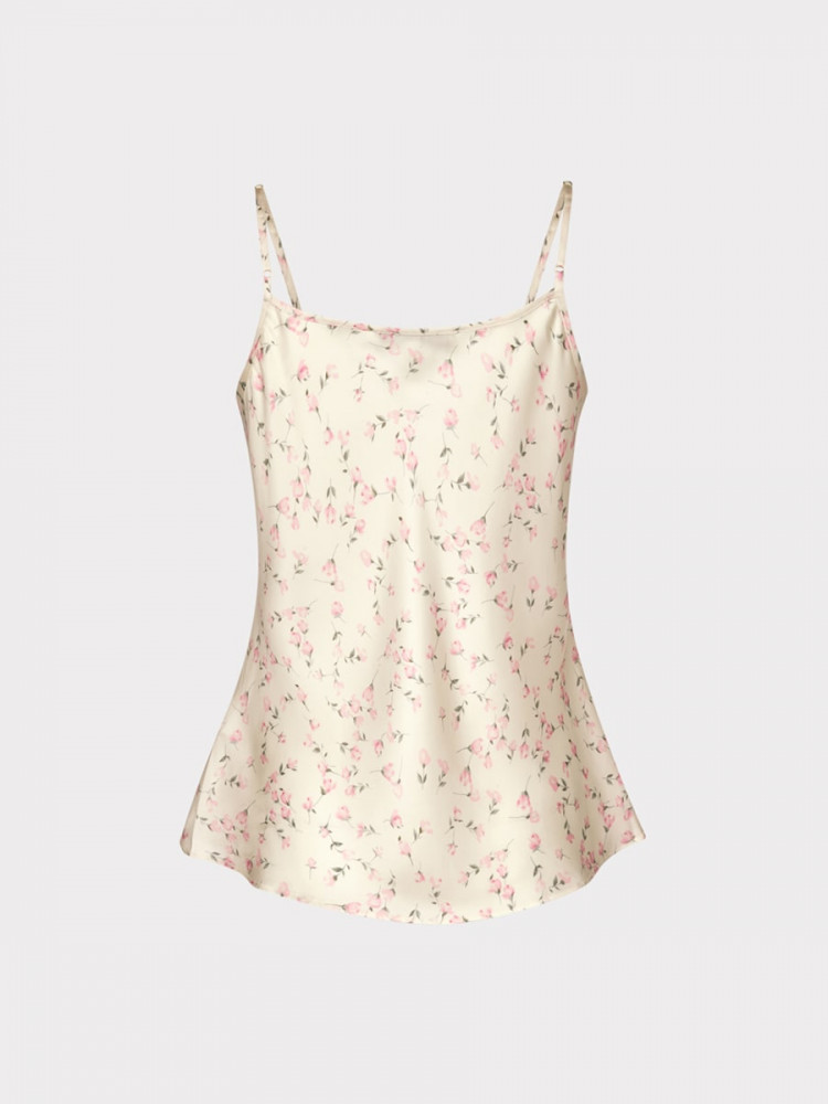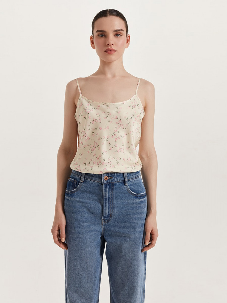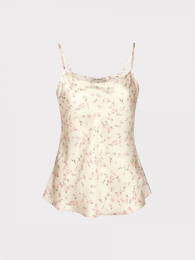 Женский топ из легкой и прочной ткани с цветочным принтом. Модель полуприлегающего кроя на тонких бретелях с регулировкой длины. Отлично выглядит как отдельно, так и в качестве основы для трендовых многослойных луков с пиджаками, кардиганами или оверсайз-рубашками.
