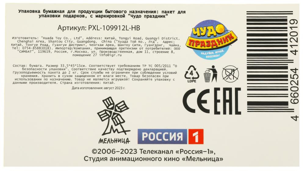 Чудо праздник Пакет подарочный «Лунтик»
