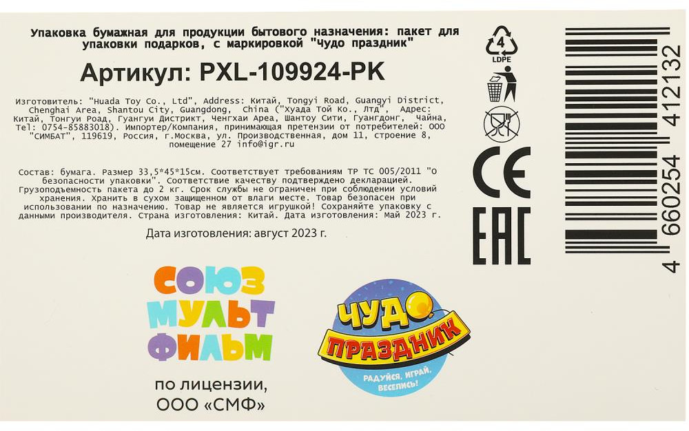 Чудо праздник Пакет подарочный