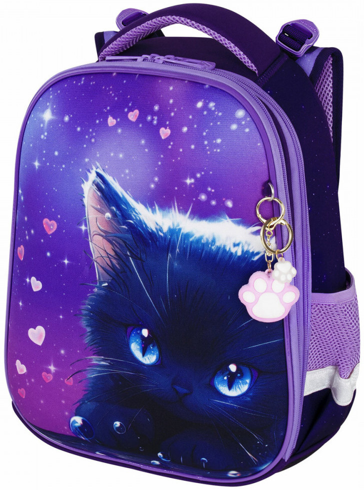 Завораживающий рисунок котенка с большими глазами в сочетании с космическим дизайном приковывает взгляды окружающих, а брелок-подвеска дополняет дизайн ранца. Premium — название серии говорит само за себя: качество материалов, печати, декоративные элементы, внимательное отношение к мелочам. Ранец покрыт высококачественной влагоотталкивающей нейлоновой тканью — кордура, в которой за счёт особой структуры нити достигнута четырёхкратная стойкость к истиранию по сравнению с простым нейлоном, также эта ткань легко чистится. Регулируемые по длине и высоте лямки можно оптимально подогнать под комплекцию ребенка, чтобы ранец носился с комфортом, несмотря на зачастую избыточный вес содержимого: учебников, тетрадей, канцтоваров. Регулировка позволит использовать ранец не один год!
