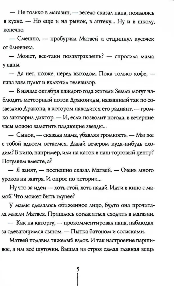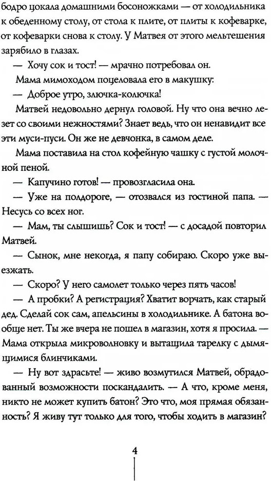 💳 Оплатить за товар можно при получении 🇰🇿 Есть бесплатная доставка по Казахстану от 1 дня 🎁 Копите бонусы с каждой покупки «Назад в будущее», говорите? «Назад в свою вероятность» — задача куда сложнее! И решать ее Матвею предстоит в одиночку — ведь все началось поздним вечером, когда он на минуту вышел из дома и наткнулся на местных хулиганов... Тот понедельник вообще не заладился: утром отключили интернет, в школе оставили после уроков, а потом мама огорошила ужасной новостью — с ними теперь будет жить чужая девчонка! Как мог закончиться такой день? Бегством от трех бандитов, мечтающих отобрать у Матвея телефон; поездкой в полупустом автобусе на окраину города; отчаянной попыткой спрятаться в заброшенной бетонной трубе. И попаданием в альтернативную вселенную, где никакого Матвея Добровольского не существует, а вместо него — девчонка по имени Милослава! Помощи ждать неоткуда: кто поверит в сказку о семикласснике, потерявшемся между мирами? Ни учителя, ни одноклассники, ни родители, ни друзья (которых у Матвея все равно нет). Разве что странный, вечно попадающий в неприятности Веня Ватрушкин? Вот уж кто разбирается в фантастических сюжетах! Виктория Ледерман в фантастических сюжетах разбирается не хуже своего героя, и повесть «Теория невероятностей» — прекрасный пример увлекательного, современного и ненавязчиво поучительного произведения. Книги писательницы — «Календарь ма[й]я», «Уроков не будет», «Всего одиннадцать, или Шуры-муры в пятом «Д», «К доске пойдет... Василькин!» и другие — давно стали бестселлерами среди читателей младшего и среднего школьного возраста. |