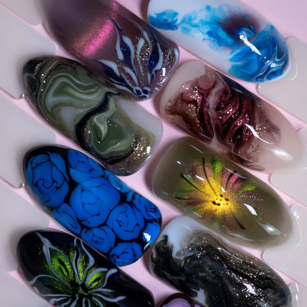 Каждый раз неповторимый. Встречайте растекающиеся гель-лаки Elpaza Bluooming gel. Легко создавайте удивительные узоры, плавные переходы цветов и захватывающие дизайны. Доверьте свой стиль лучшему — выберите растекающиеся гель-лаки Elpaza Bluooming gel.