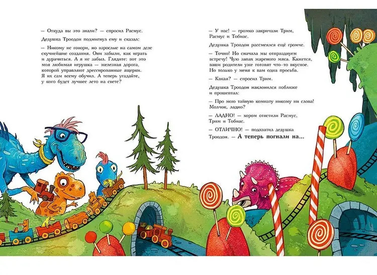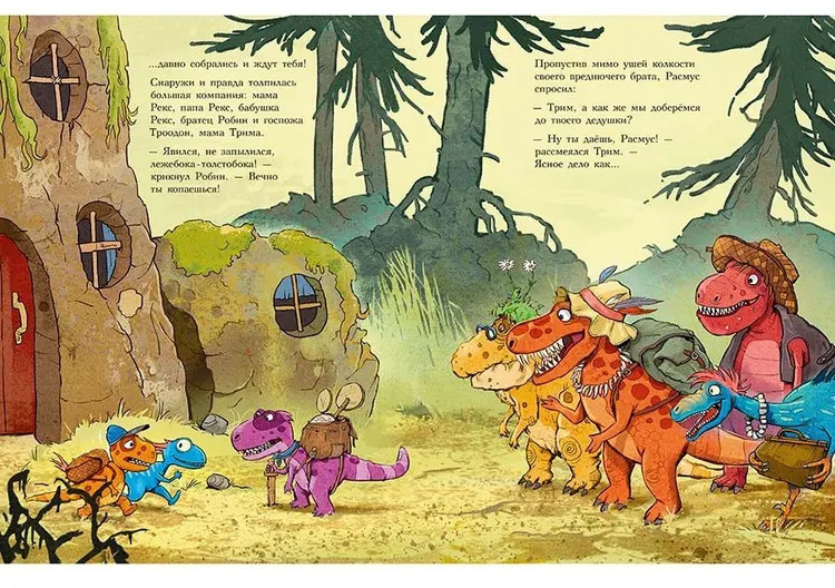 Друзья-динозаврики. ТайнаВ данный момент этот товар отсутствует в продаже. Возможно, у нас найдется аналогичный или похожий товар здесь. Серия: Друзья-динозаврики Каждая книга серии «Друзья-динозаврики» рассказывает об одном дне из жизни тираннозаврика Расмуса Рекса и его лучшего друга Трима Троодона. В то утро Трим разбудил Расмуса ни свет ни заря. Оказывается, семейство Рексов и семейство Троодонов давно договорились отправиться сегодня к дедушке Трима! А Расмус совершенно об этом забыл. Ему страшно не хотелось тащиться в такую даль, к подножию Туманных гор. И для чего? Чтобы все лето просидеть в какой-то темной пещере! Но уговор есть уговор, и Расмус тоже пошел со всеми. Когда же путешественники добрались наконец до места, дедушки они там не увидели, зато обнаружили письмо. В послании говорилось, что найти деда Трима, а заодно узнать его тайну можно, только пройдя квест по лабиринту коридоров, темных закоулков, спусков и подъемов огромной пещеры хозяина — самого большого выдумщика на свете! Серию книг о приключениях друзей-динозавриков сочинили и нарисовали писатель Ларс Мэле и художник Ларс Рудебьер. Вместе они создали целую страну Динозаврию, где на каждой странице ребенка ждет что-то смешное и неожиданное. В книге много диалогов, поэтому она отлично подойдет для чтения вслух и разыгрывания по ролям с детьми от 4-х лет. Кроме увлекательного сюжета и симпатичных героев в книге есть небольшая познавательная часть, где рассказывается о том, кто такие динозавры, когда они жили на Земле и почему исчезли. А еще приводятся интересные факты о некоторых настоящих динозаврах, которые упоминаются в этой книге. |