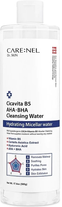 Care:Nel Вода очищающая для лица с экстрактом центеллы азиатской, В5, AHA и BHA-кислотами «Cicavita B5, AHA, BHA Cleansing Water»В данный момент этот товар отсутствует в продаже. Возможно, у нас найдется аналогичный или похожий товар здесь. Очищающая мицеллярная вода содержит витамин В5, экстракт центеллы азиатской, AHA и BHA-кислоты, 8 типов гиалуроновой кислоты. Мягкая гипоаллергенная очищающая мицеллярная вода бережно очищает от загрязнений и стойкого макияжа, также укрепляет ослабленный кожный барьер, оказывает мощный успокаивающий эффект, деликатно отшелушивает ороговевший слой эпидермиса. |