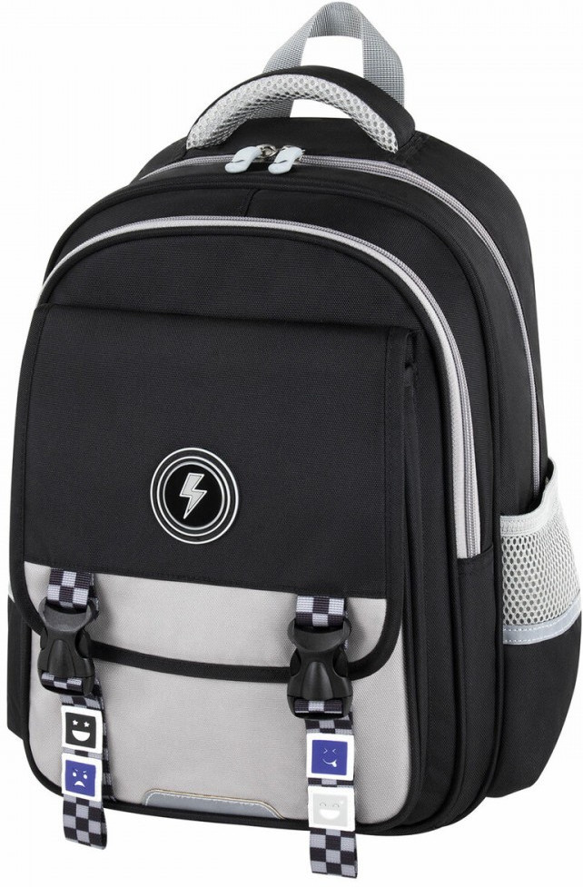 Рюкзак легко открывать и закрывать одной рукой с любой стороны - основное отделение имеет долговечную реверсивную молнию с двумя металлическими бегунками. В боковых карманах на резинке можно разместить бутылочку, термос или зонт. Нести рюкзак будет удобно не только на плечах, но и в руке за прочную уплотненную ручку. Также имеется специальная петелька из плетеной нейлоновой нити, чтобы вешать рюкзак на крючок парты. Светоотражающие элементы рюкзака расположены спереди, на торцах и на лямках. Они необходимы для безопасности пользователя в темное время суток.