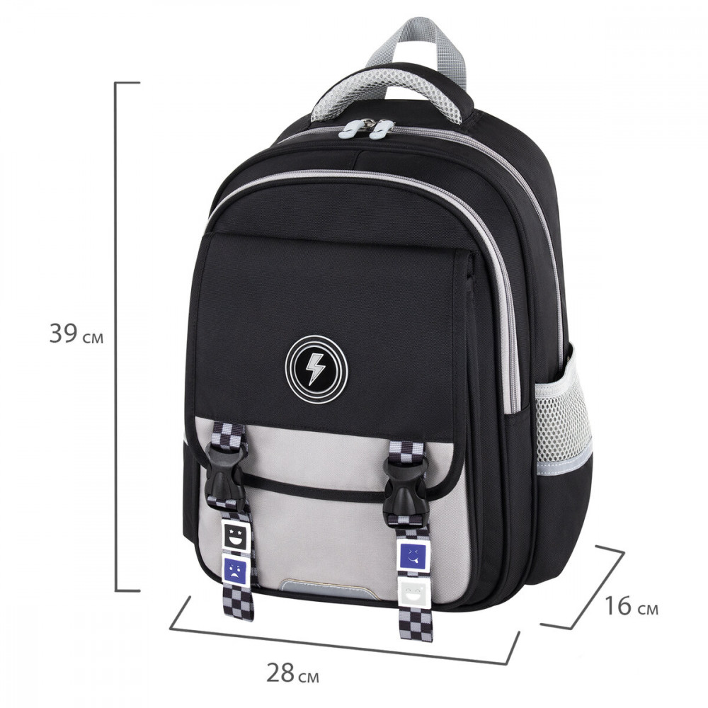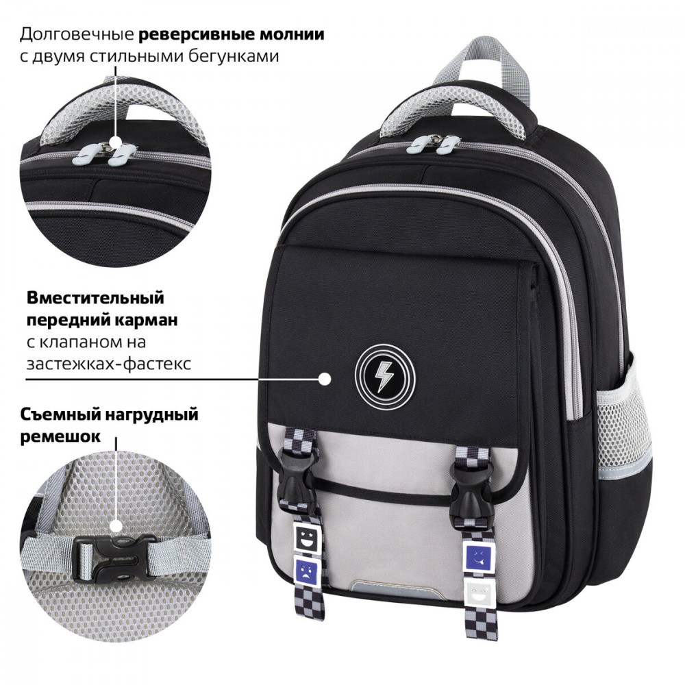 В основном отделении рюкзака можно легко и быстро разместить учебники и тетради формата А4+, а также воспользоваться прижимным отделением. Фронтальное отделение и большой передний карман-клапан на застежках-фастекс вмещает тетради и учебники формата А5. Такая организация пространства поможет держать принадлежности в сохранности и приучить ребенка к порядку.