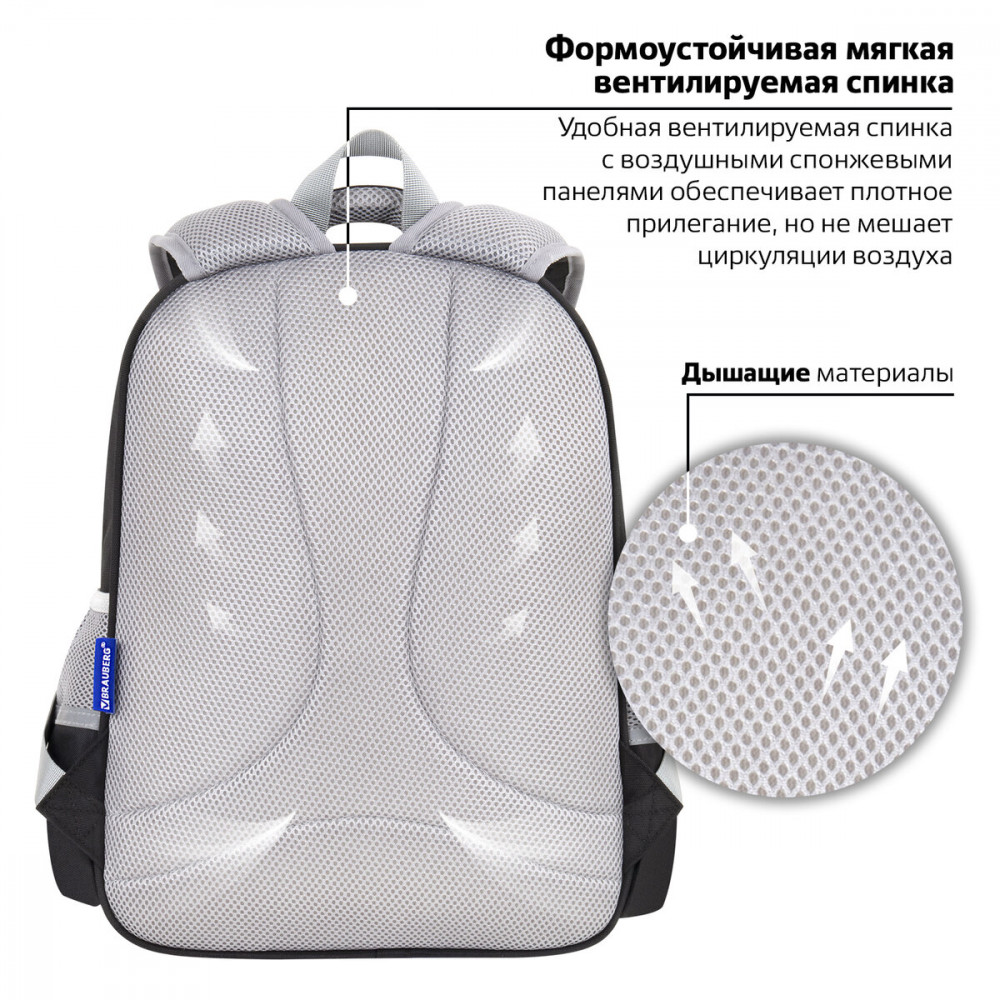 Широкие дышащие лямки имеют S-образную форму, позволяющие носить рюкзак с комфортом. Удобная мягкая вентилируемая спинка с воздушными спонжевыми панелями разработана с учетом анатомических особенностей детей младшего и среднего школьного возраста. Рюкзак оснащен съемным нагрудным ремешком, который снижает нагрузку на спину. В процессе эксплуатации равномерное распределение нагрузки позволит сохранить правильную осанку!