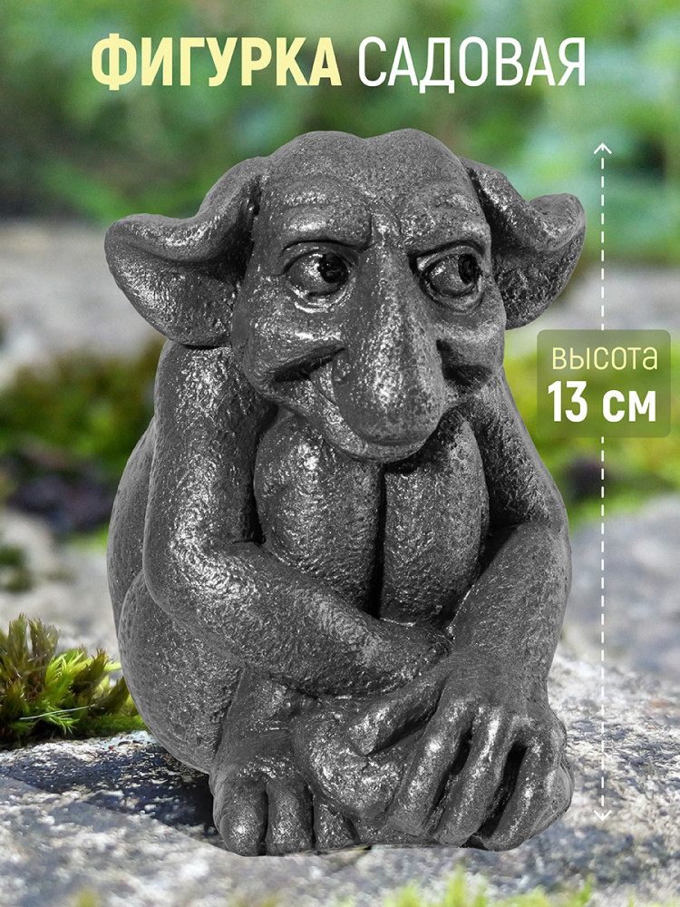 Фигурка Elan Gallery «Тролль» выполнена из гипса. Фигуру сказочного тролля можно использовать как уличный декор или интерьерное украшение вашего дома. Дачная фигурка в оттенке графит (серый) украсит газон возле веранды или беседки на вашем участке. Разместите гипсовую статуэтку на даче возле клумбы или альпийской горки. Создайте с помощью неё декоративную композицию в цветочном садике. Поставьте волшебного тролля во дворе вашего дома, и он присмотрит за садом или огородом.