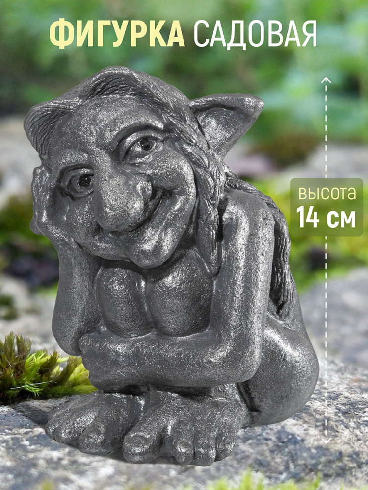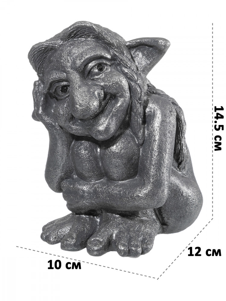 Elan Gallery Фигурка «Тролль Василиса»В данный момент этот товар отсутствует в продаже. Возможно, у нас найдется аналогичный или похожий товар здесь. Фигурка Elan Gallery «Тролль Василиса» выполнена из гипса. Фигуру сказочного тролля можно использовать как уличный декор или интерьерное украшение вашего дома. Дачная фигурка в оттенке темное серебро украсит газон возле веранды или беседки на вашем участке. Разместите гипсовую статуэтку на даче возле клумбы или альпийской горки. Создайте с помощью неё декоративную композицию в цветочном садике. Поставьте волшебного персонажа во дворе вашего дома, и он присмотрит за садом или огородом. Дома его можно посадить в большой горшок или кашпо среди цветов и растений. Газонная скульптура — незаменимый инвентарь для оформления ландшафтной композиции. Не рекомендуется использовать абразивные моющие средства. Садовые фигурки — прекрасный подарок для ваших близких, в том числе бабушки, которая любит украшать свой огород. Фигурка мифического существа каждый день будет поднимать настроение вашим близким и подарит атмосферу волшебства и сказки любому пространству. |
