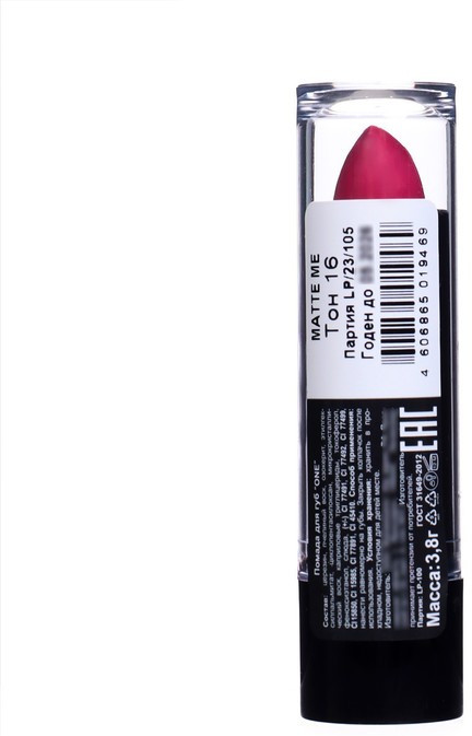 Состав помады не натуральный, но безопасный, матовый, бархатистый финиш, так как помада матовая чуть-чуть совсем сушит губы,но это не критично достаточно нанести увлажняющюю гигиеническую помаду.