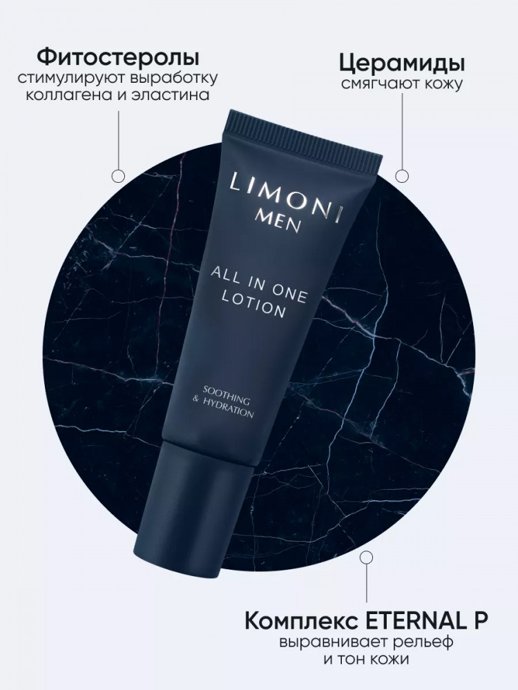 Limoni Крем-лосьон для лица мужской «All In One Lotion»-35% +113 приятный запах нежная консистенция