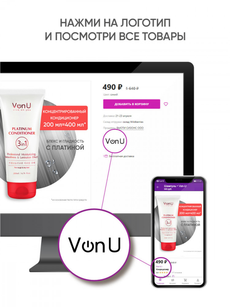 Von-U Кондиционер для волос с платиной «Platinum Conditioner»-43% +39