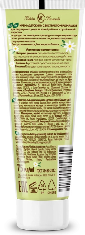 Невская Косметика Крем детский с экстрактом ромашки-20% +24