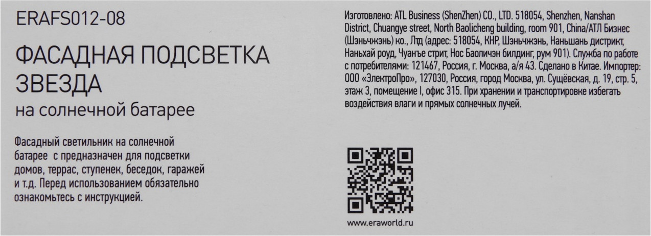 Эра Светильник фасадный на солнечной батарее «Звезда»-25% +312