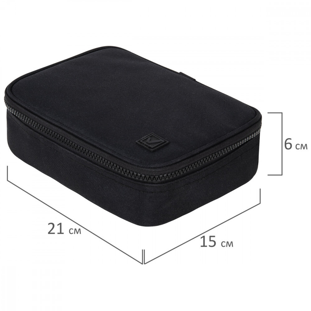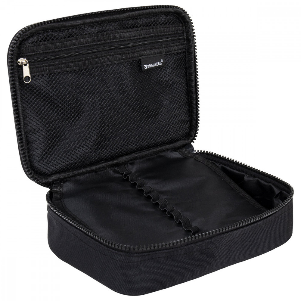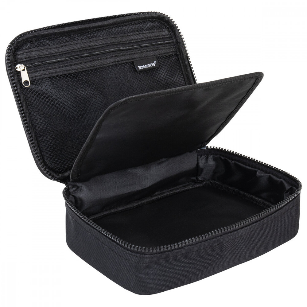 Пенал-косметичка Brauberg увеличенного объема выполнен из прочного материала. Надежная молния оснащена металлическим брендированным бегунком. Пенал вмещает до 100 канцелярских предметов стандартных размеров. Пенал прямоугольной формы с одним вместительным отделением и органайзером внутри. Выполнен из плотного полиэстера, внутри есть подкладка, которая дополнительно защищает содержимое.