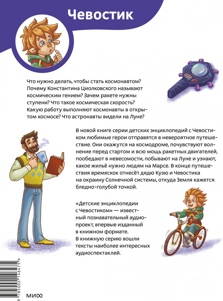 💳 Оплатить за товар можно при получении 🇰🇿 Есть бесплатная доставка по Казахстану от 1 дня 🎁 Копите бонусы с каждой покупки Серия: Чевостик Чевостика и дядю Кузю ждут новые невероятные приключения. На этот раз они отправятся в космос. Герои изучат историю космонавтики, побывают на Международной космической станции и увидят приземление космонавтов. А читатели будут наблюдать за первым полетом человека в космос и узнают, можно ли выпить чашечку чая в невесомости. |
