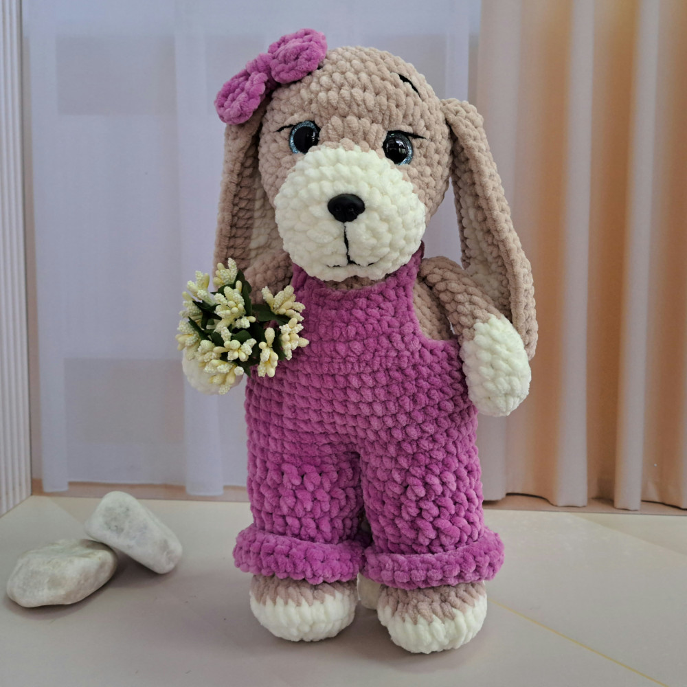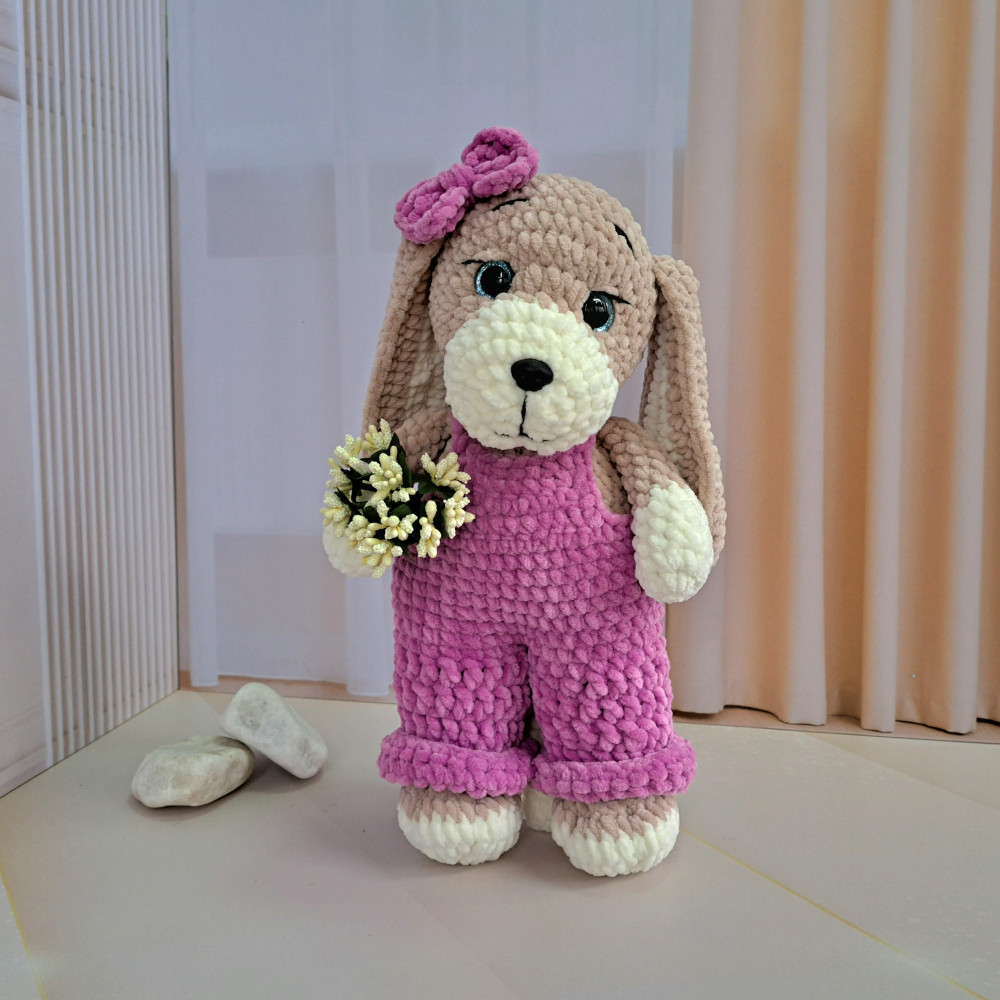 Собачка «Лапочка»В данный момент этот товар отсутствует в продаже. Возможно, у нас найдется аналогичный или похожий товар здесь. Связана из гипоаллергенной плюшевой пряжи, носик и глазки на безопасном креплении. Комбинезон снимается. |
