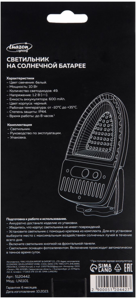 Luazon Lighting Светильник на солнечной батарее садовый-25% +43