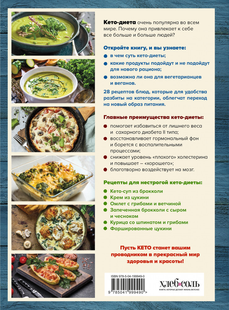 Кето-кулинария. Путь к здоровью без таблетокВ данный момент этот товар отсутствует в продаже. Возможно, у нас найдется аналогичный или похожий товар здесь. Серия: Кулинария. Еда для здоровья Среди огромного количества всевозможных диет кето стоит особняком. Потому что, по сути, это не диета, это особый образ питания, перейдя на который вы меняете свою жизнь навсегда! Все, о чем вы хотели знать о кето, и даже больше, вы найдете в нашей книге. Вы узнаете, в чем суть кето-диеты, в чем ее главные преимущества, какие продукты подойдут и не подойдут для вашего нового рациона, подходит ли кето-диета вегетарианцам и веганам, и не только. А также найдете 28 рецептов, которые разбиты на категории для вашего комфортного перехода на новый образ питания. Приготовьте кето цезарь, такос или шоколадный мусс; узнайте, как сделать любое ваше блюдо полезным, следуя авторским советам. Пусть кето станет вашим спасением и проводником в новый прекрасный мир стройности, здоровья и красоты! |