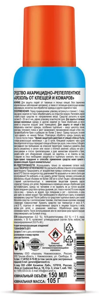 💳 Оплатить за товар можно при получении 🇰🇿 Есть бесплатная доставка по Казахстану от 1 дня 🎁 Копите бонусы с каждой покупки Предназначен для защиты людей от таежных и лесных клещей, блох (переносчиков воз-будителей опасных заболеваний человека), а также от летающих кровососущих насеко-мых (комаров, мокрецов, москитов) при обработке одежды и других изделий из ткани. |
