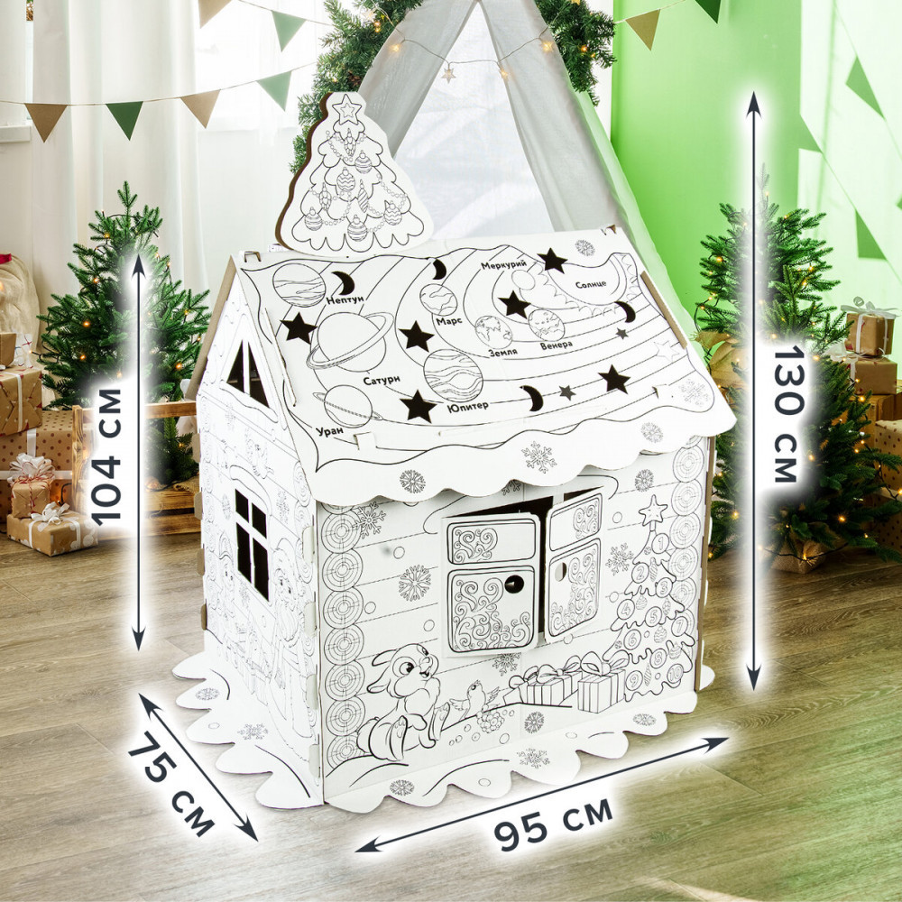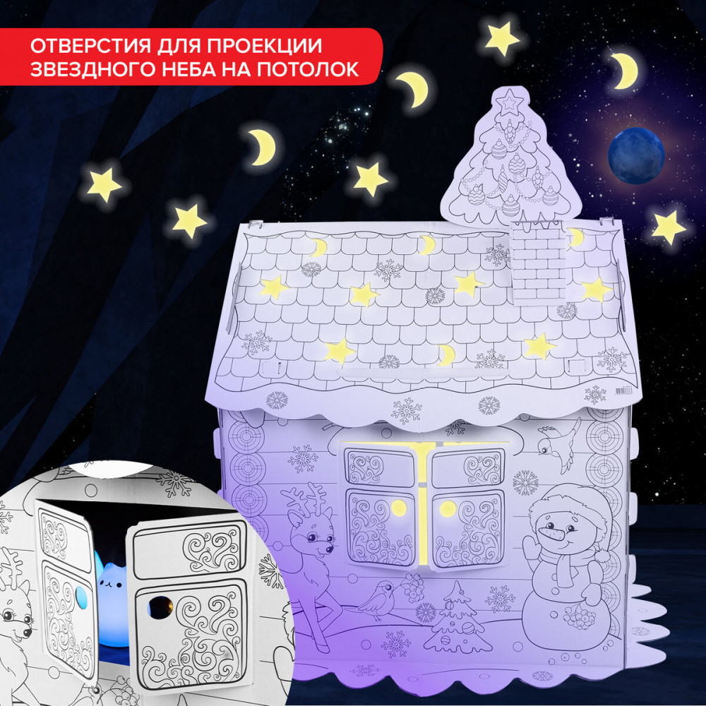 Картонный игровой развивающий домик-раскраска «Новогодний» Brauberg Kids станет идеальным личным пространством ребенка для игр, чтения книг или просто для отдыха.
