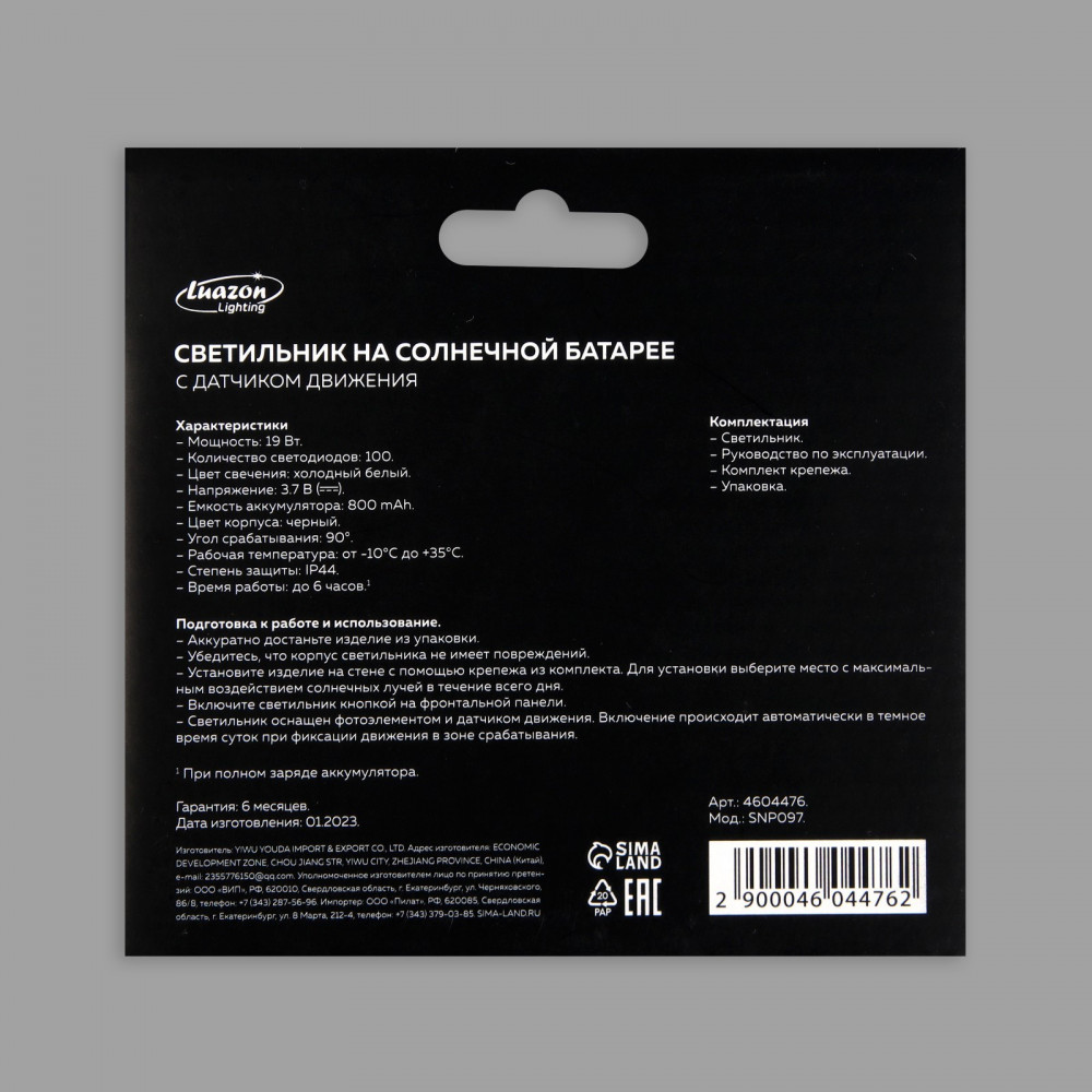 Luazon Lighting Светильник фасадный на солнечной батарее-25% +144 плохо работает бесполезная вещь