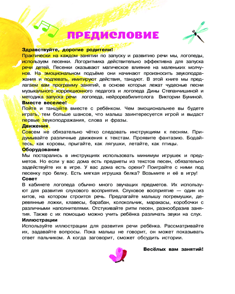 💳 Оплатить за товар можно при получении 🇰🇿 Есть бесплатная доставка по Казахстану 🎁 Копите бонусы с каждой покупки Серия: Раннее обучение Песенки оказывают магическое влияние на маленьких молчунов. На эмоциональном подъёме они начинают произносить звукоподражания и подпевать, имитируют действия и танцуют. В этой книге мы предлагаем вам программу занятий по логоритмике, в основе которых лежат чудесные песни музыкального коррекционного педагога и логопеда Дины Степанчишиной и методика запуска речи логопеда, нейрореабилитолога Виктории Буниной. Вы можете прослушать с ребёнком песенки по QR-кодам, рассмтреть красочные иллюстрации, а также выполнить под музыку специальные задания. Такие занятия помогают активизировать речь, развить внимание и мышление малыша. |