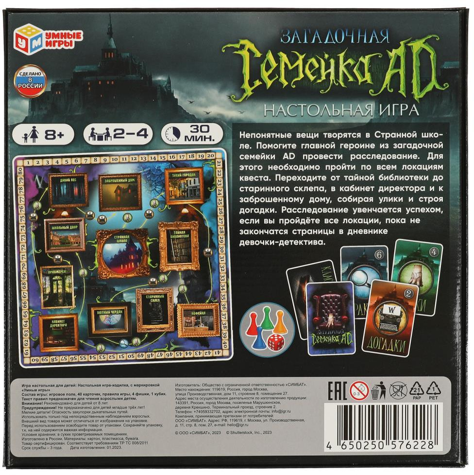 Умные игры Настольная играВ данный момент этот товар отсутствует в продаже. Возможно, у нас найдется аналогичный или похожий товар здесь. Серия: Семейка Адамс Непонятные вещи творятся в Странной школе. Помогите главной героине из загадочной семейки AD провести расследование. Вам предстоит перемещаться по 11 локациям на игровом поле, собирать жетоны с уликами и выполнять задания с дополнительных карточек. Переходите от тайной библиотеки до старинного склепа, в кабинет директора и к заброшенному дому, собирая улики и строя догадки. Расследование увенчается успехом, если вы пройдёте все локации, пока не закончатся страницы в дневнике девочки-детектива. |