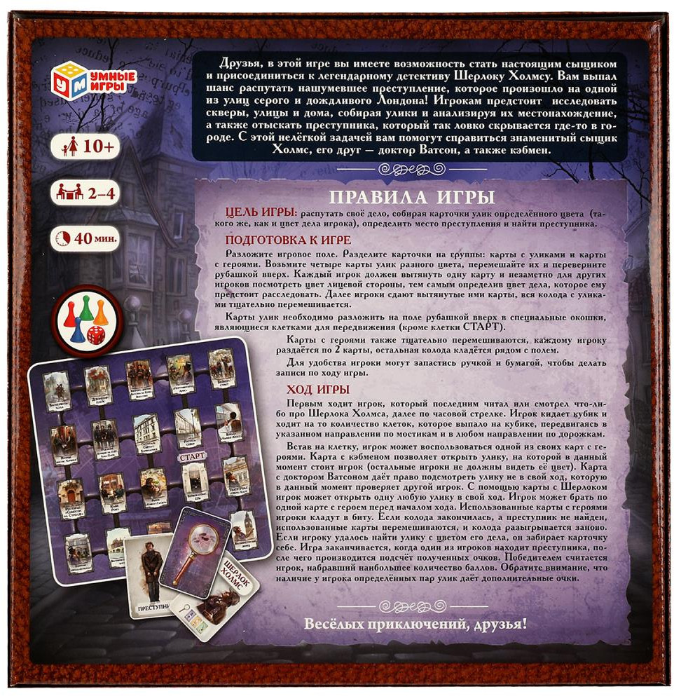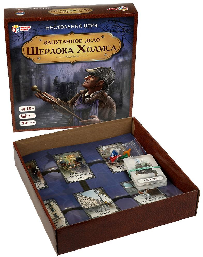 💳 Оплатить за товар можно при получении 🇰🇿 Есть бесплатная доставка по Казахстану от 1 дня 🎁 Копите бонусы с каждой покупки Настольная игра «Запутанное дело Шерлока Холмса» ТМ «Умные игры» поможет почувствовать себя настоящим сыщиком! Вам выпал шанс распутать нашумевшее преступление, которое произошло на одной из улиц серого и дождливого Лондона! Игрокам предстоит исследовать скверы, улицы и дома, собирая улики и анализируя их местонахождение, а также отыскать преступника, который так ловко скрывается где-то в городе. С этой нелёгкой задачей вам помогут справиться знаменитый сыщик Холмс, его друг – доктор Ватсон, а также кэбмен. |